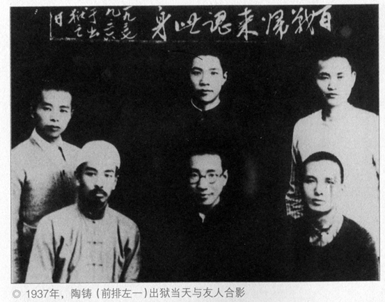 1933年5月,陶铸被捕入狱,在监狱战斗了5年。图为1937年9月,陶铸、赵希愚、曹瑛等人出狱后合影。