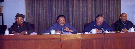 1982年党的十二大上,李维汉被选为中央顾问委员会副主任。图为1982年9月李维汉与邓小平、薄一波、许世友等在中顾委一次全会上。