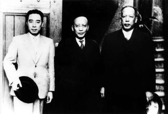 在革命战争年代,李维汉主要从事党政和统战工作。图为1946年9月,李维汉与周恩来、郭沫若在中共上海办事处。