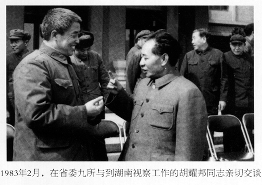 1983年2月,胡耀邦到湖南视察,与湖南省委书记、副省长兼长沙市委第一书记的刘夫生亲切交谈。
