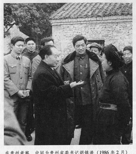 胡耀邦重视农村改革,主持制定了有关农村问题的一系列重大方针政策。图为1986年2月,胡耀邦在贵州考察,中间为贵州省委书记胡锦涛。