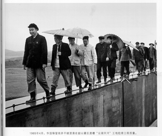 华国锋是湖南省首个灌溉百万亩农田的大工程——韶山灌区的策划者与指挥者。图为1966年1月,华国锋在湖南省韶山灌区洙津渡工地。