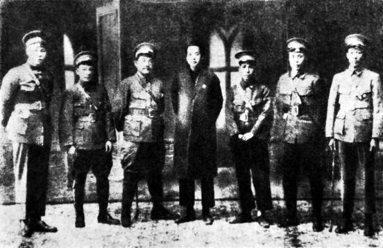 邓中夏是震惊世中外的省港大罢工的主要领导人之一。图为在省港大罢工中,邓中夏与工人纠察队的主要负责人合影。